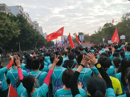 出乎意料的多人吧,本以为跑开来,就算人多也不会多挤,结果迈不开步伐。