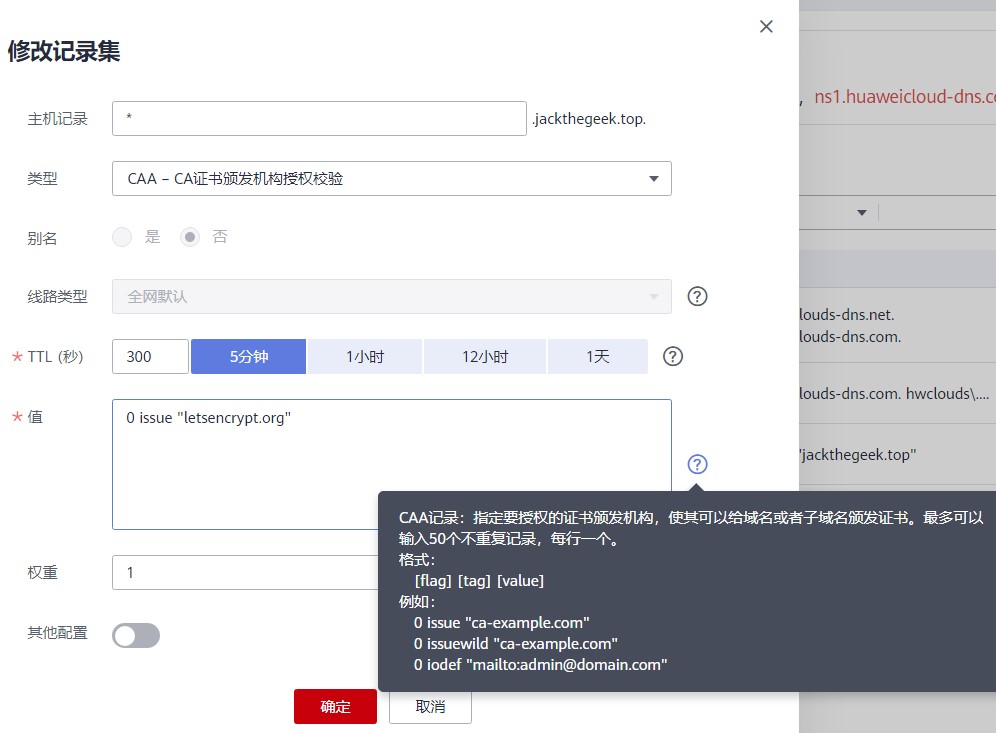 我开始想会不会是华为那边的问题第一次用到CAA记录,用于给证书颁发机构授权