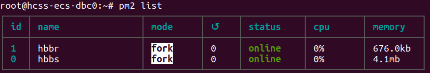pm2 start hbbr可以使用 pm2 list 查看当前的进程